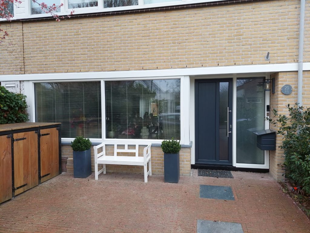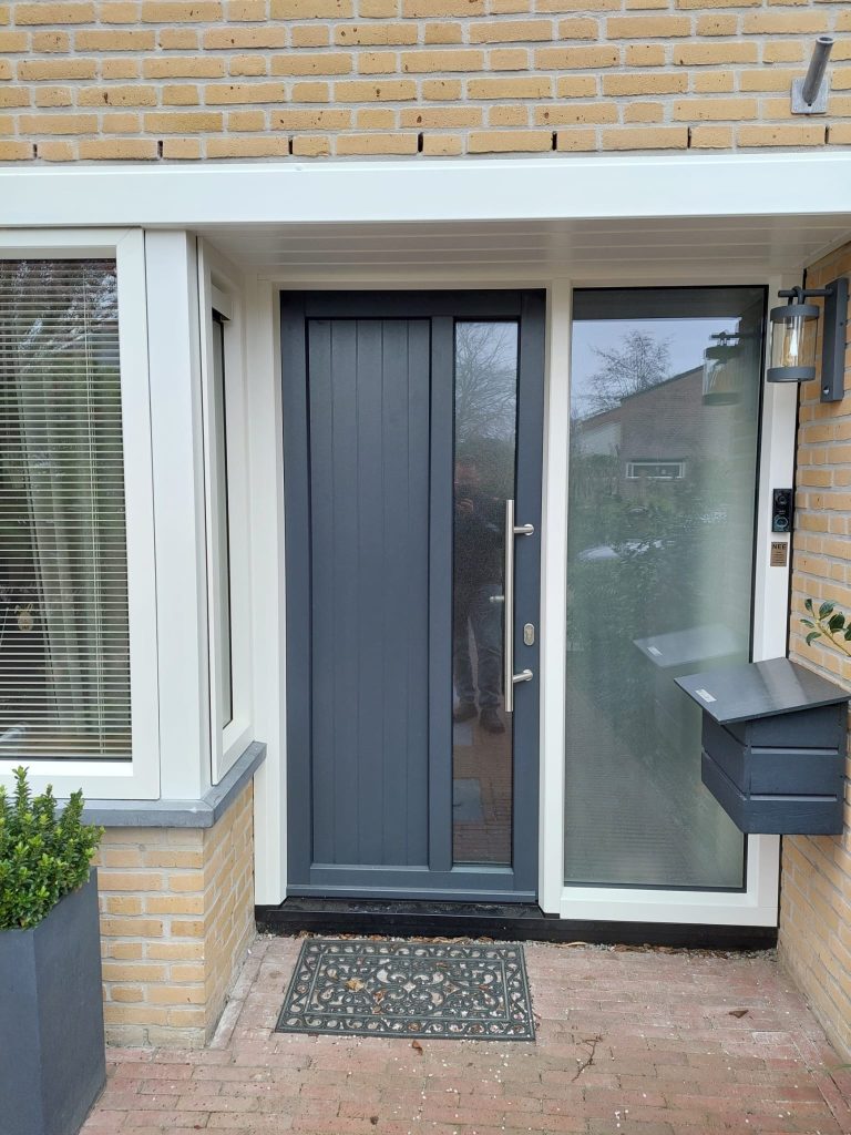 Plaatsen voordeur en erker. Incl natuursteen. Incl. luifel bekleden met kunststof